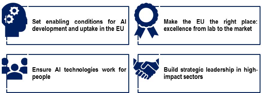 The European Union Coordinated Plan on Artificial Intelligence is a strategic initiative developed by the European Commission and EU Member States to promote development, deployment and use of AI technologies across the European Union. It is structured around four pillars: