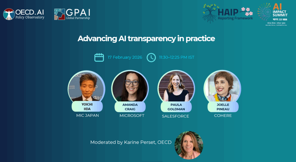 Co-hosted by the OECD, Japan’s Ministry of Internal Affairs and Communications, Infosys, and Microsoft, this discussion explored how to align national and regional policy frameworks with shared expectations for transparency, safety, and accountability.
